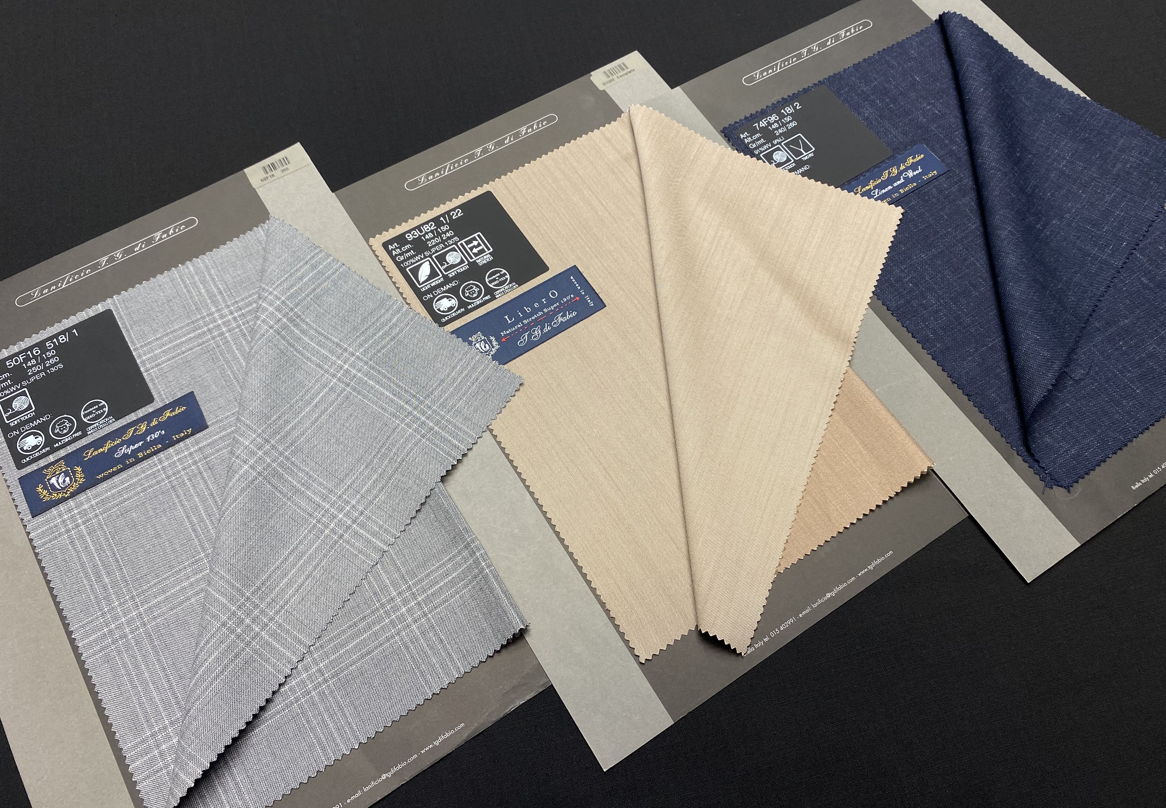 Abiti pettinati super 130's dal gusto sartoriale in versione ferma e/o LiberO Natural Stretch, unito e fantasia. Completano questo gruppo la gabardina super 130's effetto solaro e il pettinato in lana lino dall’aspetto molto fine e dalla mano super soft.